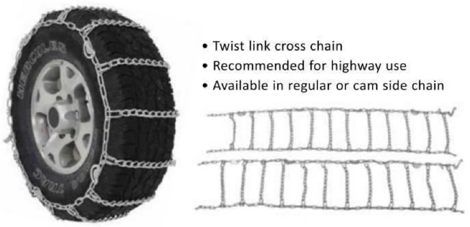CADENAS PARA NIEVE CON PÚAS REFORZADAS DE ACERO CEMENTADO, Zinc electrogalvanizado diseñadas para uso industrial pesado y condiciones extremas. Incluye llave de ajuste.